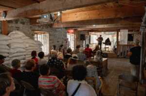 L’évènement s’est ensuite transporté dans le moulin banal où une cérémonie hommage a eu lieu vers 13h00. Durant la cérémonie, plusieurs personnes en ont profité pour souligner l’importance du rôle qu’a joué monsieur Labbé au sein du moulin de la Seigneurie des Aulnaies et, plus globalement, pour le développement et la reconnaissance du métier de meunier au Québec.