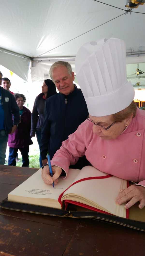 M. André Simard, maire de Saint-Roch-des-Aulnaies était aussi de toutes les activités de la fin de semaine. Il a ainsi profité du passage de Sœur Angèle pour lui faire signer le livre d’or. Membre des Amis de la Seigneurie, il aura participé avec ces derniers, à l’élaboration de pizzas cuites au four à bois lors de l’activité Pizzas du terroir 5 à 7.