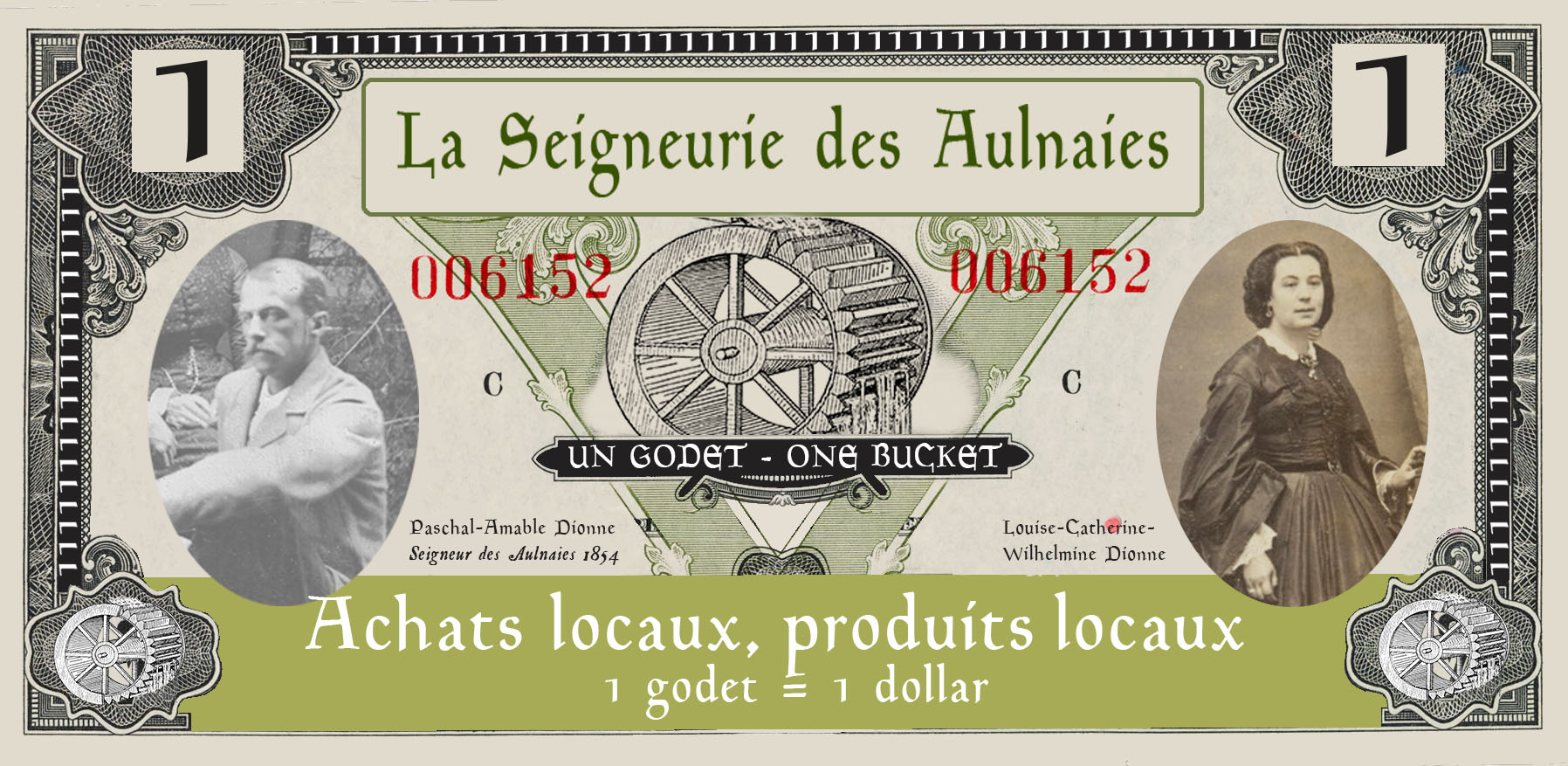 « Notre objectif est d’encourager les visiteurs à poser un geste concret en achetant localement et ainsi démontrer leur volonté de développer un comportement responsable envers la communauté et l’environnement. », dit Monsieur André Anglehart, Directeur Général de La Seigneurie des Aulnaies. À l’achat d’un accès à l’événement, les visiteurs recevront 5 Godets dollars en monnaie locale. Ces dollars serviront uniquement pour les achats au village des gourmands afin d’encourager nos producteurs et transformateurs locaux. Cet outil a pour but de conscientiser les consommateurs aux valeurs d’entraide, de solidarité locale et pour redynamiser le secteur agroalimentaire sur le plan économique en ces temps de pénurie de main d’œuvre et de changement climatique. « Le godet permet à la roue du moulin de tourner. Le but de cette monnaie locale est donc de faire tourner l’économie locale. »