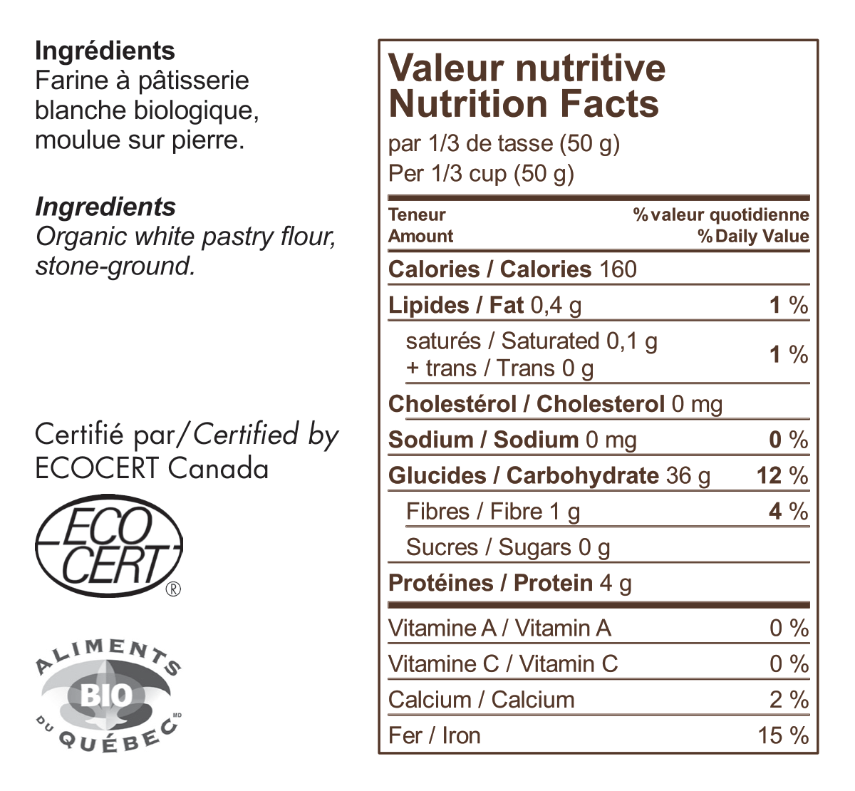 Toutes nos farines sont certifiées biologiques par ECOCERT Canada.